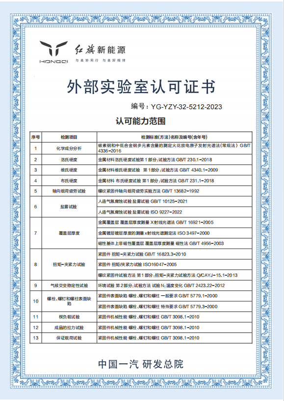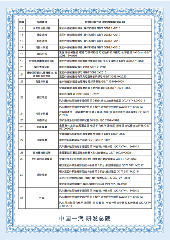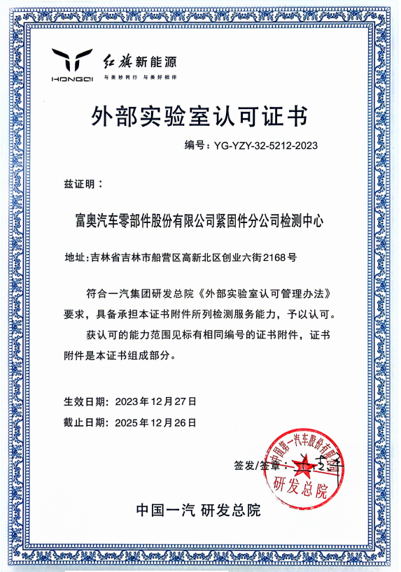 一汽研發(fā)總院---富奧汽車零部件股份有限公司緊固件分公司檢測(cè)中心